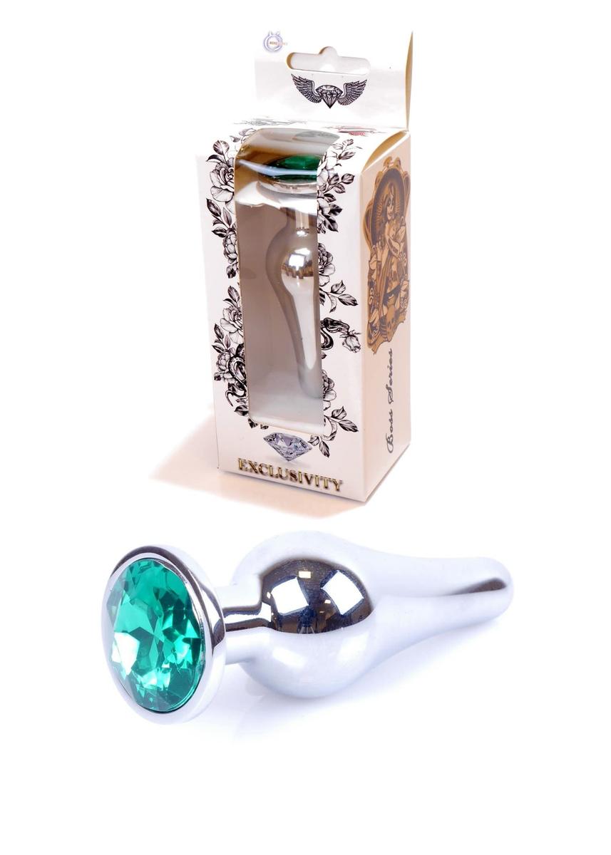 Boss Series Jewellery Silver Butt Plug Green 9.5 x 3 cm Stainless Steel
