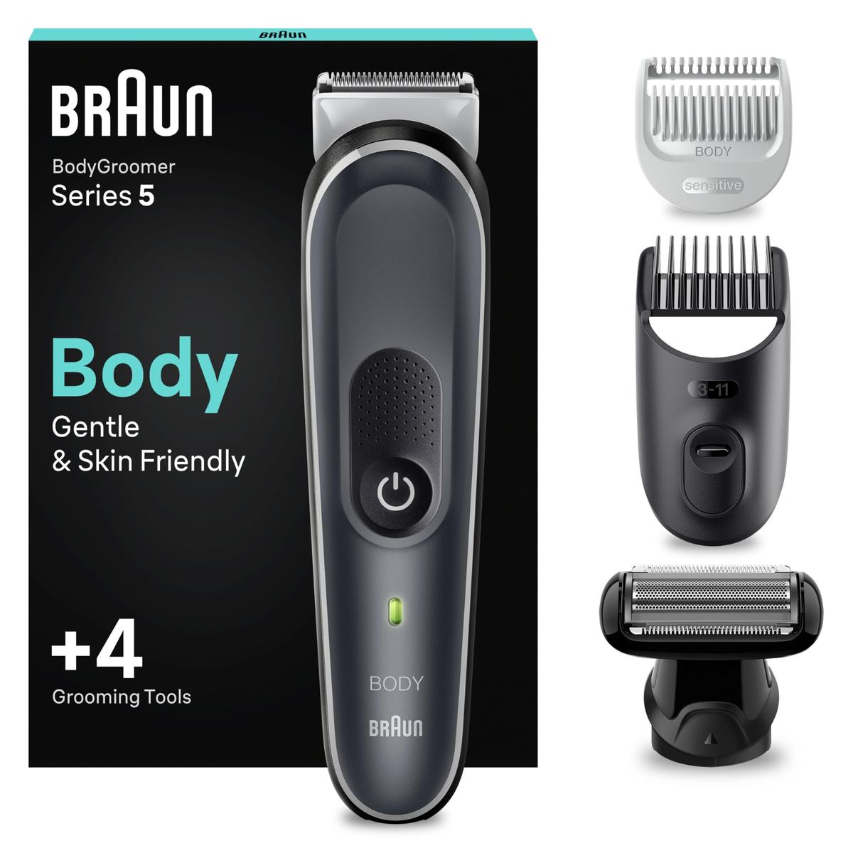 Braun Series 5 Ηλεκτρική Ξυριστική Μηχανή Trimmer Σώματος για Στήθος, Μασχάλες, Στοχαστικές Περιοχές SkinShield Technology 100 Λεπτά Ασύρματη Αυτονομία BG5370 Γκρι