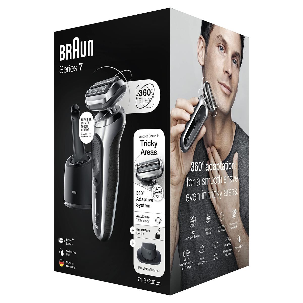 Braun | Ξυριστική Μηχανή | 71-S7200cc | Χρόνος λειτουργίας (max) 50 λεπτά | Wet & Dry | Ασημί/Μαύρο