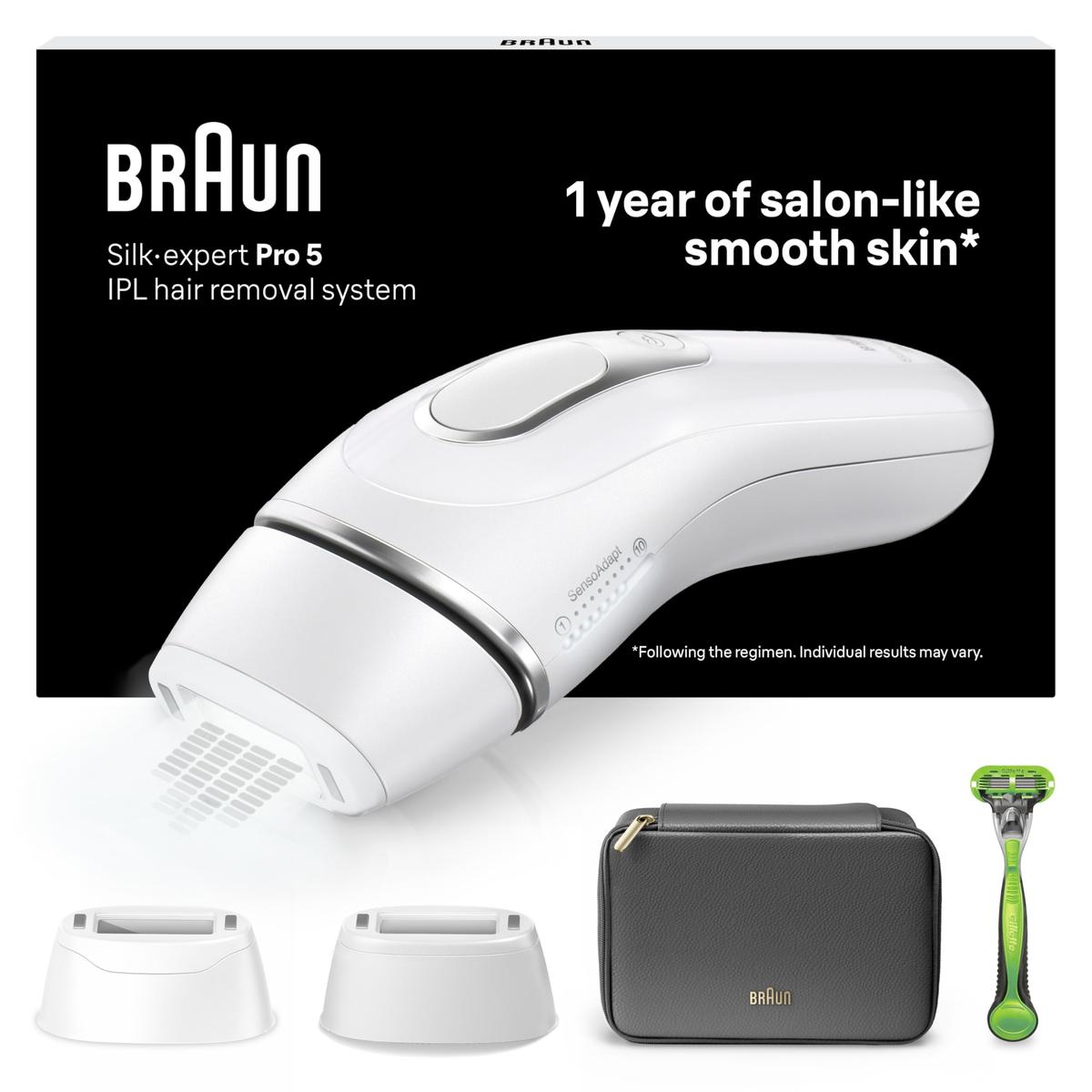 Τυπικό αναλώσιμο για μασχάλες και κάτω πόδι καθώς και ευρύ αναλώσιμο για μηρό, στήθος ή πλάτη. Ήπια στο δέρμα συσκευή αποτρίχωσης IPL Βέλτιστη ένταση φωτός για κάθε σημείο του σώματος με SkinPro (SensoAdapt)