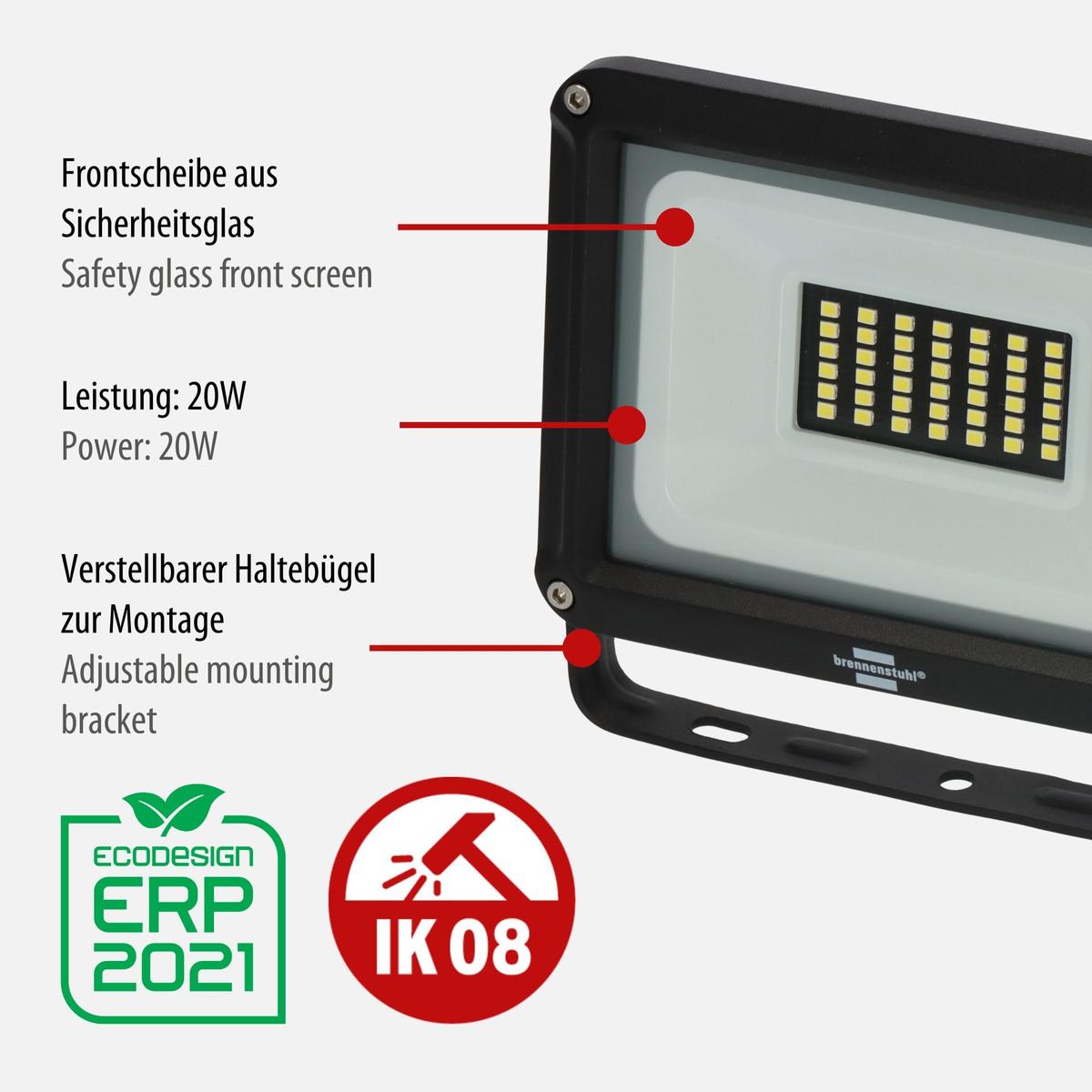 Brennenstuhl 1171250241 προβολέας 20w led μαύρος