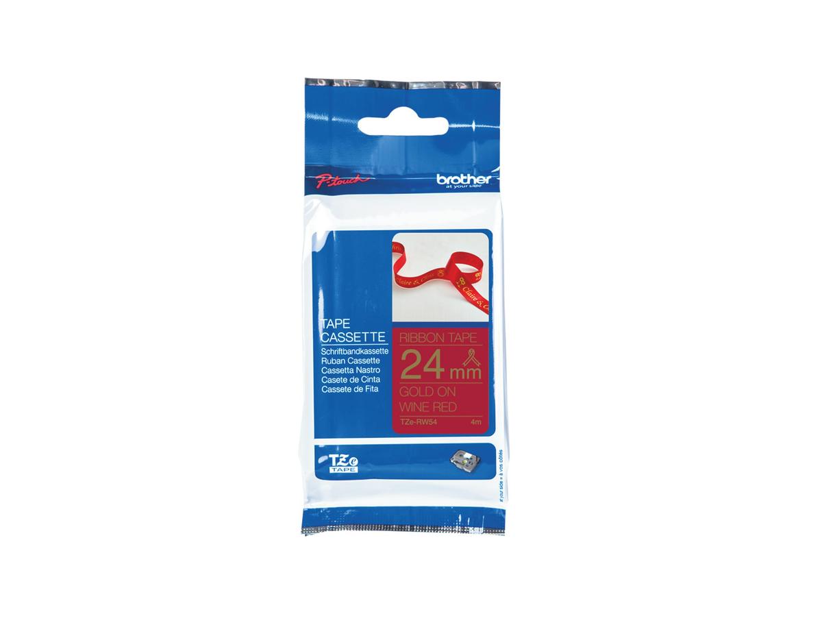Brother TZERW54 Fabric Tape 24 mm x 4 m Dark Red Background with Gold Lettering