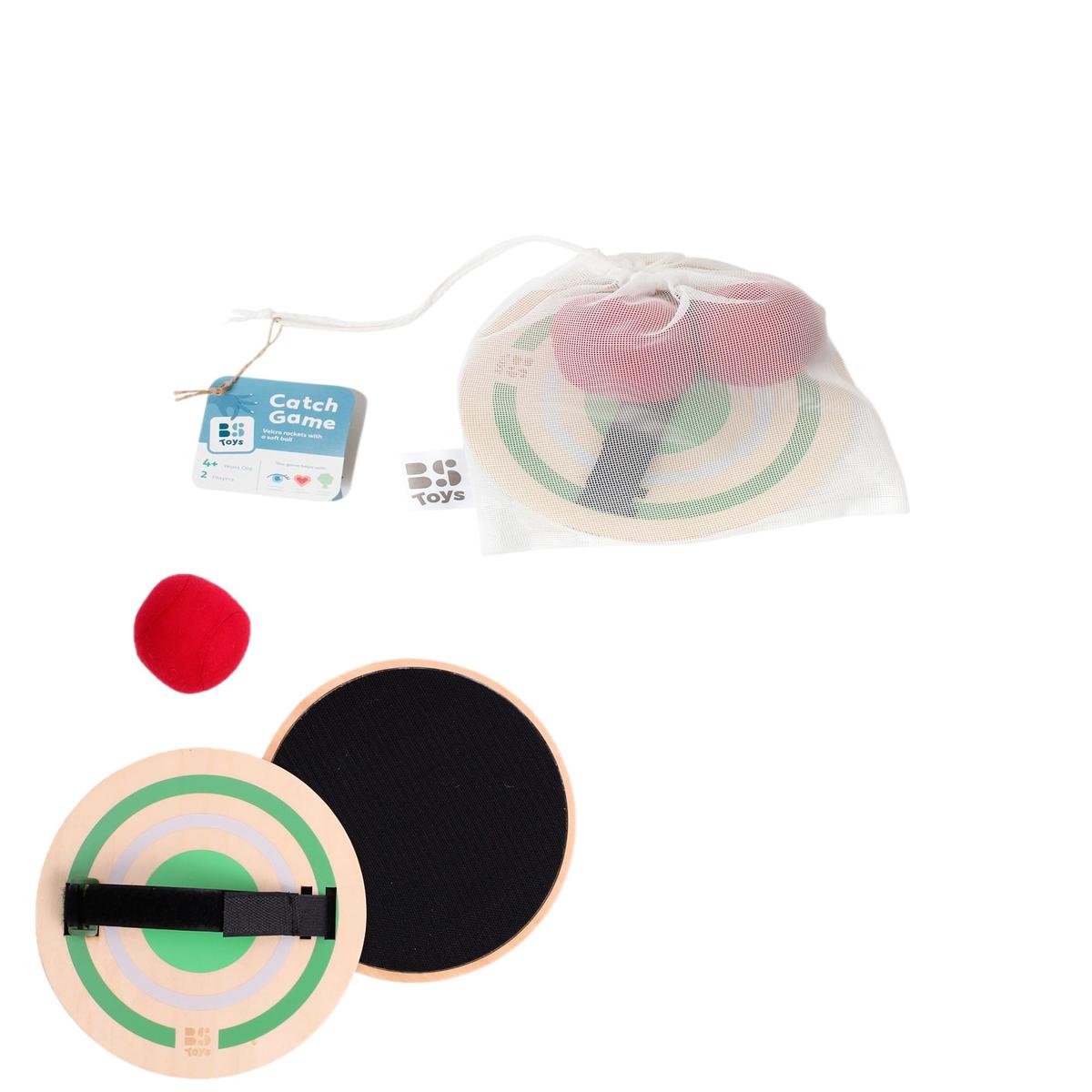 BS Toys Catch Game Activity Game Wooden Velcro Catchers Soft Ball