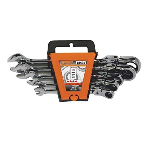 Wrenches with rotating ratchet part. Ratchet with 72 teeth made of high-quality steel; therefore, a long term warranty is granted for the wrenches for 5 years. The set contains 8; 10; 13; 17; 19 wrenches.