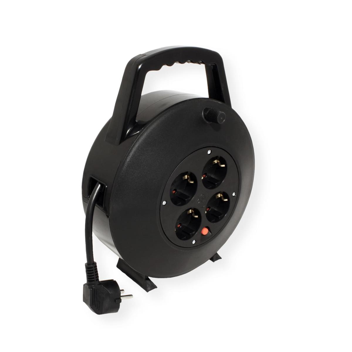 Cable reel, 4 earthed outlets, 10m, temperature fuse, black