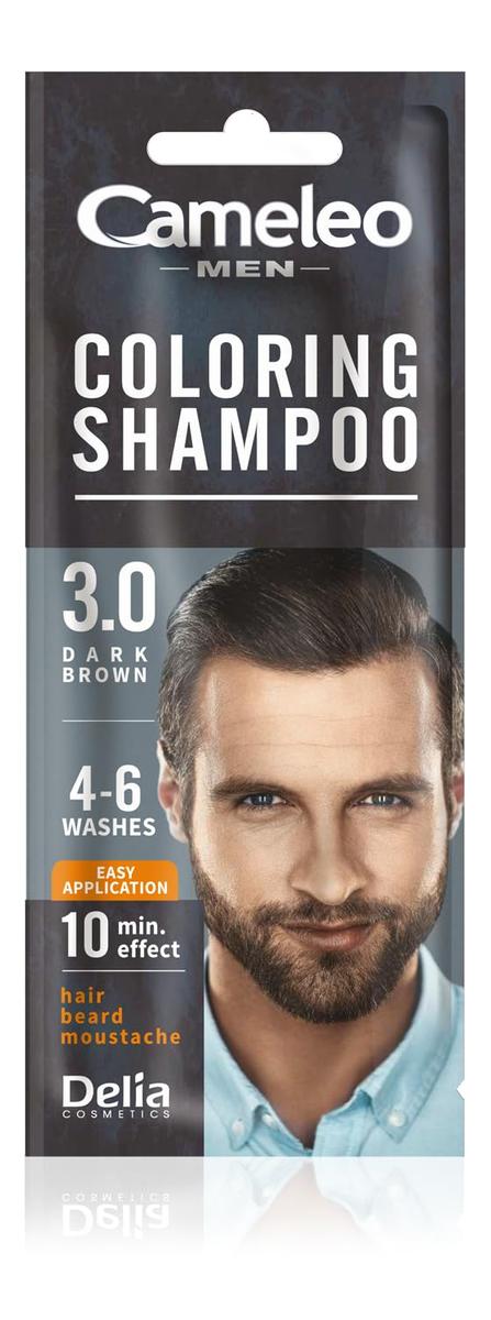 Cameleo Men Coloring Shampoo Dark Brown Hair, Beard, Mustache 15 ml Walnut Extract Lasts 4 to 6 Washes