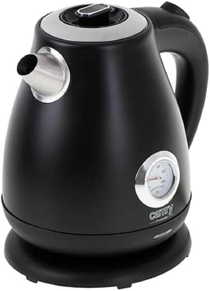 Μέγιστη Ισχύς: 2200W, Ονοματολογική Ισχύς: 1850W. Μέγιστη χωρητικότητα: 1,7L. Κατασκευή από ανοξείδωτο χάλυβα, Προστασία από άδειασμα. Ηλεκτρικός βραστήρας με θερμόμετρο. Βαθμονομημένη στάθμη νερού. Αναλογικό μετρητή θερμοκρασίας νερού. Περιστροφική βάση 360 μοιρών, Κλασικό σχέδιο.