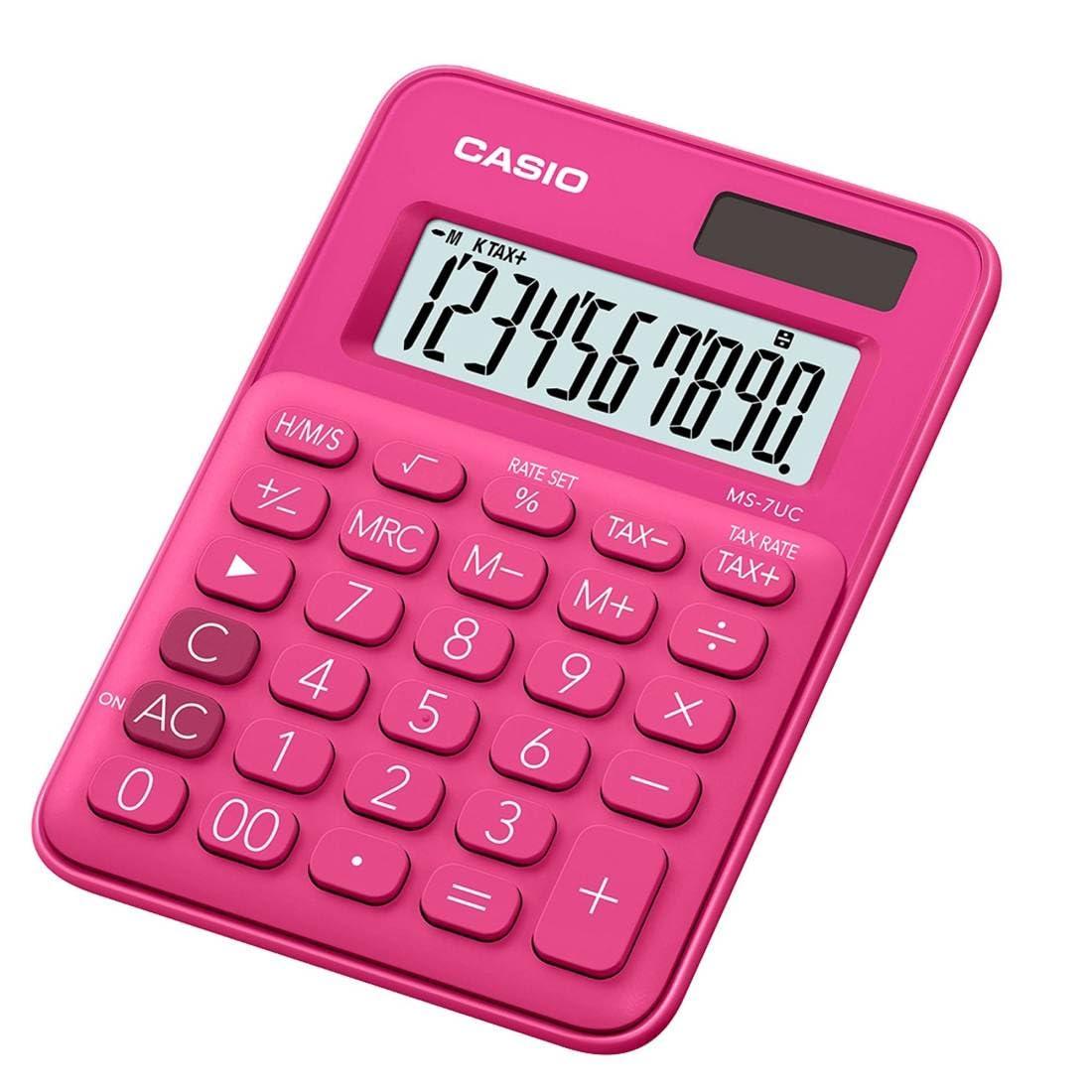 Return to the office without forgetting a single thing! Buy Calculator Casio MS-7UC-RD Red and be the envy of your colleagues!Digits: 10 DigitsPower supply: Battery/solarControl type: ButtonsApprox. dimensions: 1,9 x 8,6 x 12 cmBattery: LR1130Approx. weight: 70 gCharacteristics: CoverColour: RedPinkTechnology: LCDType: DeskCalculatorPhotovoltaic solar panelSize: A4