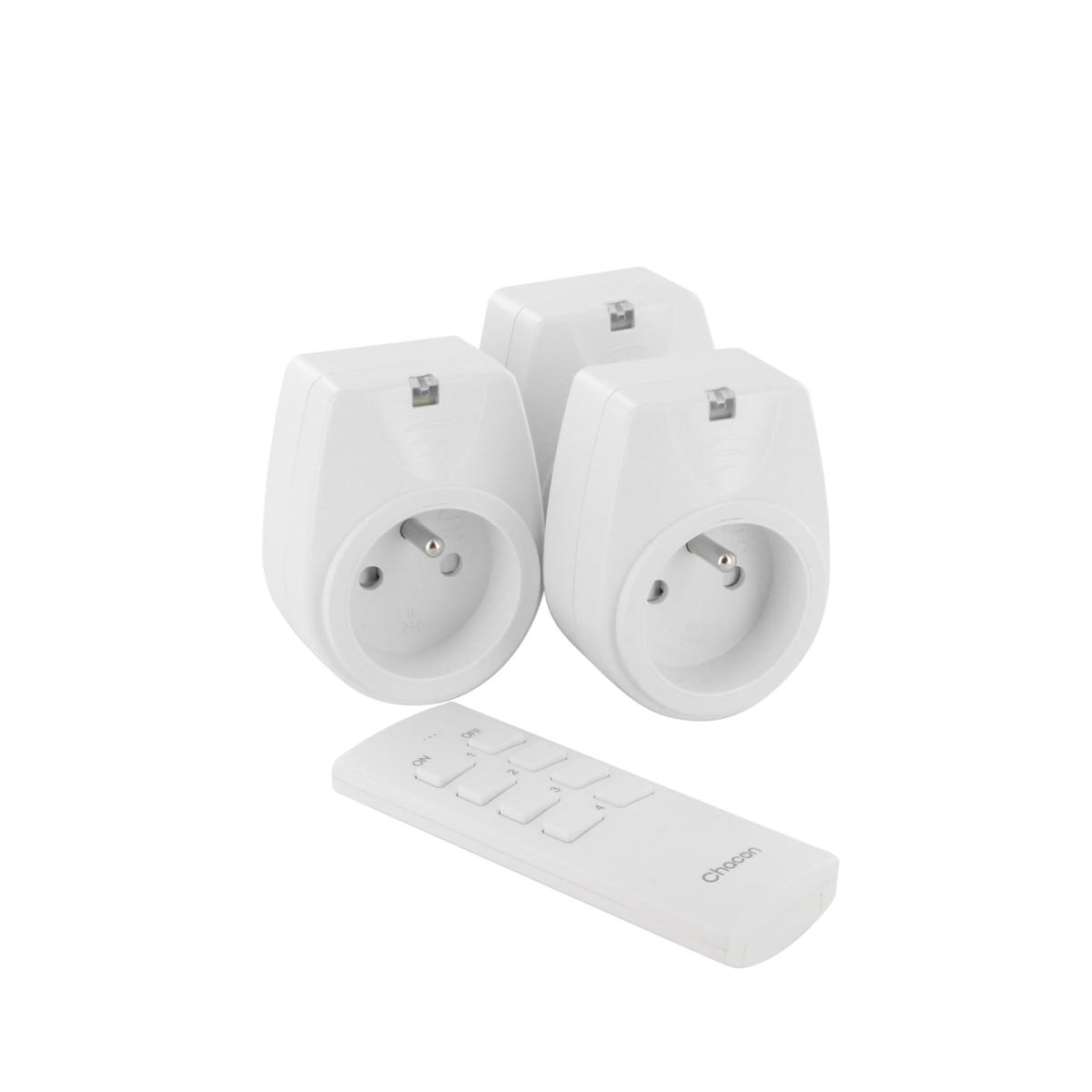 If you like to take care of every detail in your home and own the latest products that will make your life easier, purchase Socket set with remote control Chacon (3 Units) at the best price.Product with plug: YesType of plug: EuropeanFrenchPlug EUType EColour: WhiteCharacteristics: Remote controlWirelessEasy to set upFunctions: Electronic ignitionIncludes: Remote control for plugPower: 2000 WUnits: 3 UnitsRange: 25 m