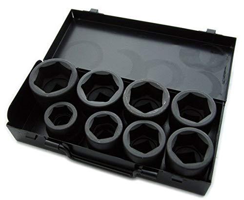 A set of eight impact sockets, from 24 mm to 41 mm Made of chromium-molybdenum steel (Cr-Mo). Screw sockets included: 24, 27, 30, 32, 33, 36, 38, 41. Metal packaging.