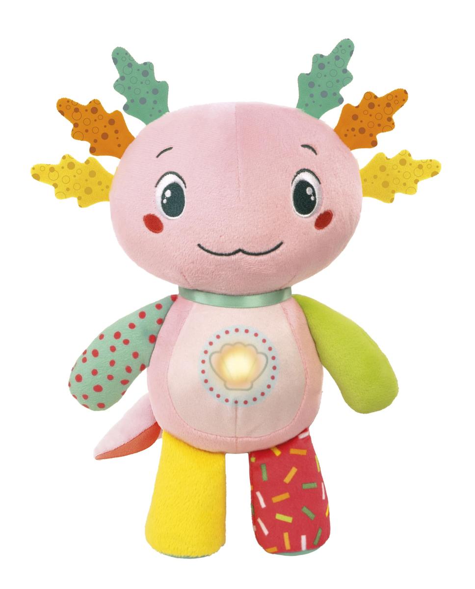 Questa salamandra super trendy diventa un morbido compagno di giochi interattivo! Il tasto centrale attiva la riproduzione di canzoncine e filastrocche che stimolano la lallazione, introducono alle prime lettere e alle prime parole, ai primi numeri e ai colori. I diversi tessuti e gli elementi fruscianti stimolano lo sviluppo multisensoriale del bambino. Il dolcissimo peluche intrattiene il bambino e stimola l'affettivit. Scopri tutta la linea di plush interattivi di Clementoni!