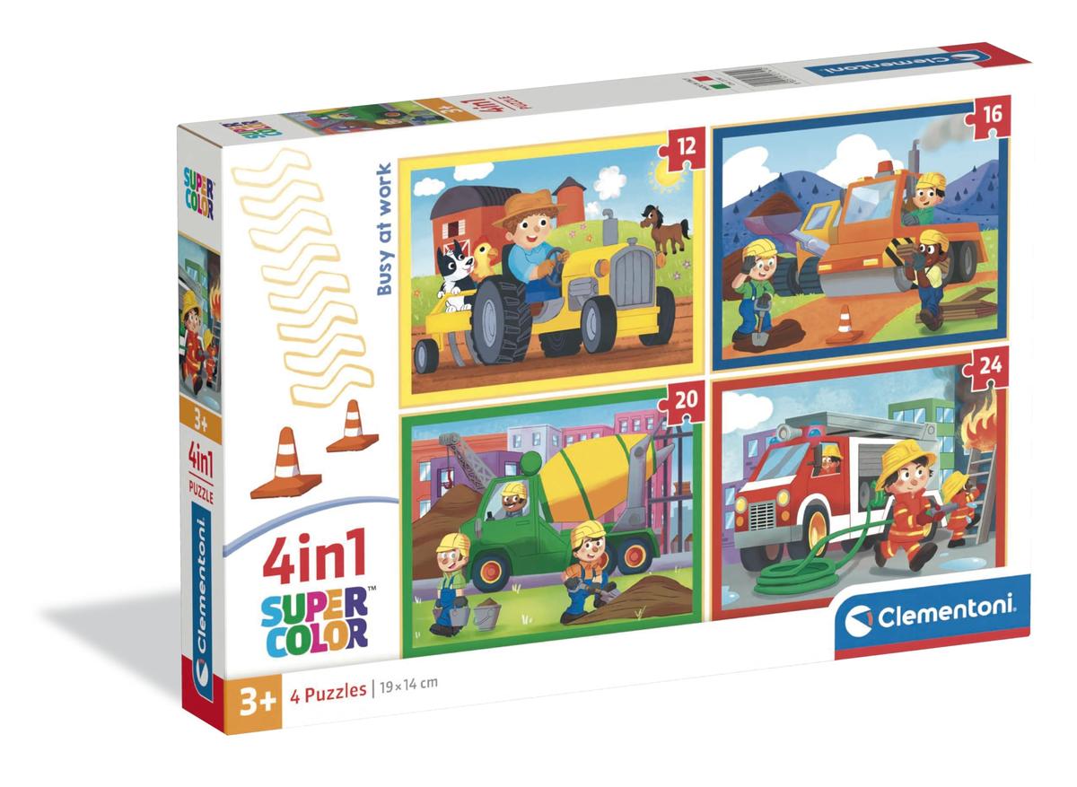 Clementoni Busy At Work Puzzle 4 in 1 12 + 16 + 20 + 24 Pieces 18.9 x 14.2 cm