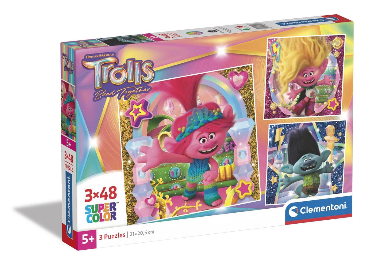 Clementoni Supercolor Puzzle Trolls 3 3 x 48 Pieces 27 x 18.3 cm Pink