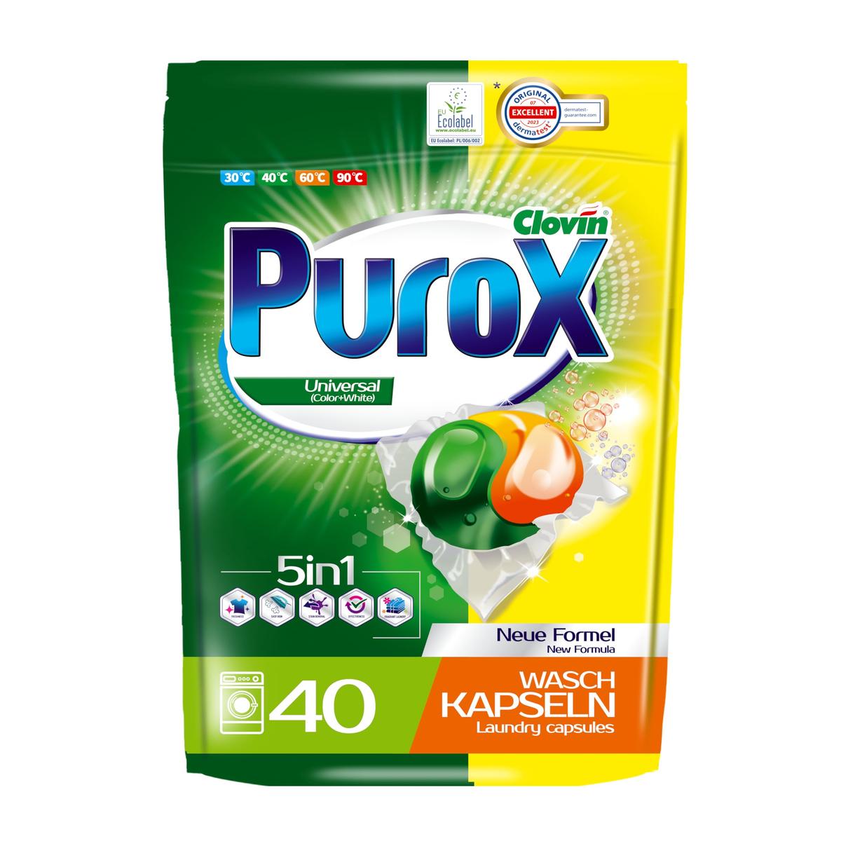 Clovin Purox Universal Washing Machine Detergent Capsules 40 Washes For All Fabrics Eco-Friendly