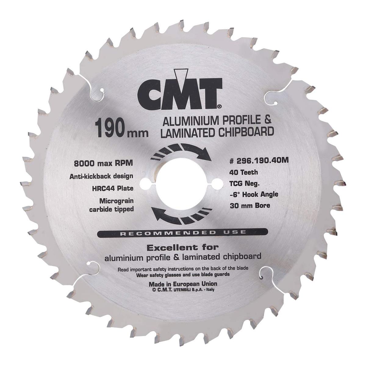 CMT Circular Saw Blade 190 x 30 x 64 Teeth For Non-Ferrous Metals, PVC, Laminated Panels
