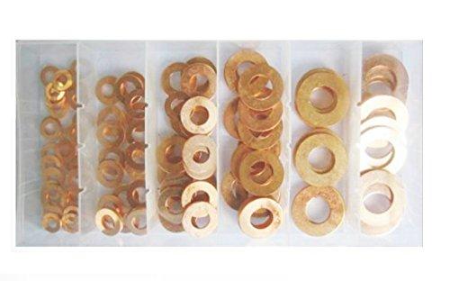 Set of 150 pieces of copper washers in various sizes.The set includes the most popular sizes used in plants and workshops.The set is placed in a box closed with latches with an eye for hanging on a hook, e.g. in a workshop.Each size has a separate compartment in the collective packaging to prevent mixing during transport.SET CONTAINS:4 x 8 x 1.0 mm [pcs.]: 106 x 10 x 1.0 mm [pcs.]: 106 x 12 x 1.0 mm [pcs.]: 108 x 12 x 1.0 mm [pcs.]: 108 x 14 x 1.0 mm [pcs.]: 1010 x 14 x 1.0 mm [pcs.]: 1010 x 16 x 1.0 mm [pcs.]: 1012 x 16 x 1.5 mm [pcs.]: 512 x 18 x 1.5 mm [pcs.]: 514 x 18 x 1.5 mm [pcs.]: 1014 x 20 x 1.5 mm [pcs.]: 516 x 20 x 1.5 mm [pcs.]: 1016 x 22 x 1.5 mm [pcs.]: 518 x 22 x 1.5 mm [pcs.]: 518 x 24 x 1.5 mm [pcs.]: 520 x 26 x 1.5 mm [pcs.]: 1022 x 27 x 1.5 mm [pcs.]: 1024 x 30 x 1.5 mm [pcs.]: 524 x 30 x 2.0 mm [pcs.]: 5TECHNICAL DATA:Material, Type: Copper washersNumber of pieces in the set [pcs.]: 150Packaging dimensions [mm]: 205 x 105 x 30Weight [g]: 275