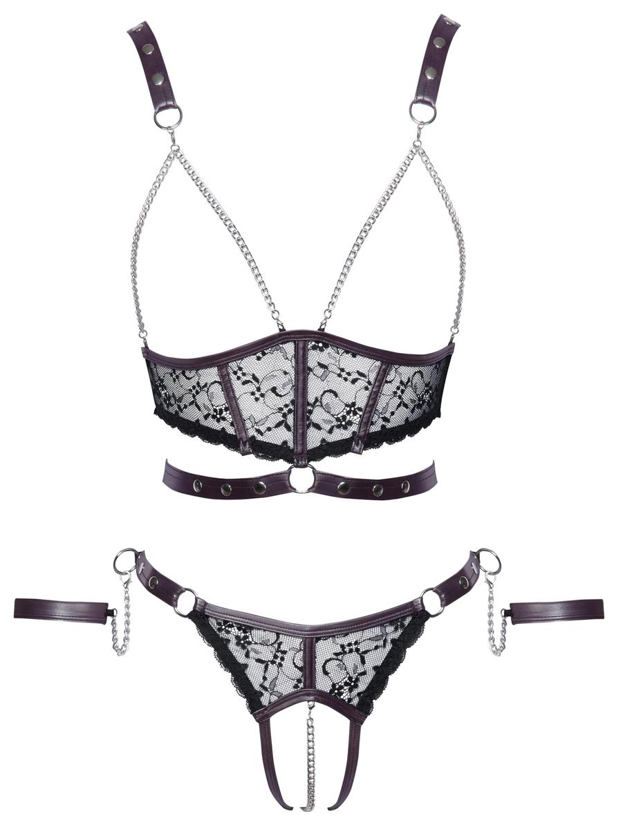 Cottelli Bondage Top Set Size L Black Lace and Purple Details