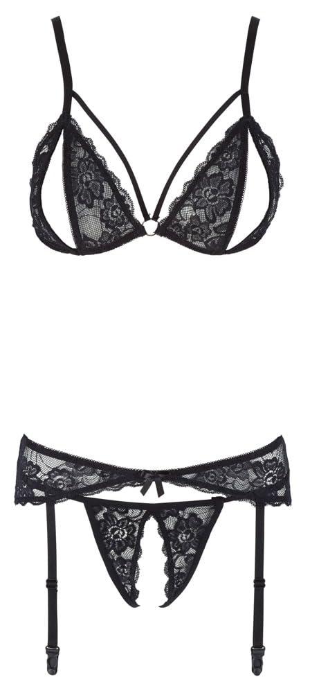 Cottelli Collection Lace Suspender Set XL Black Floral Lace 3-Piece