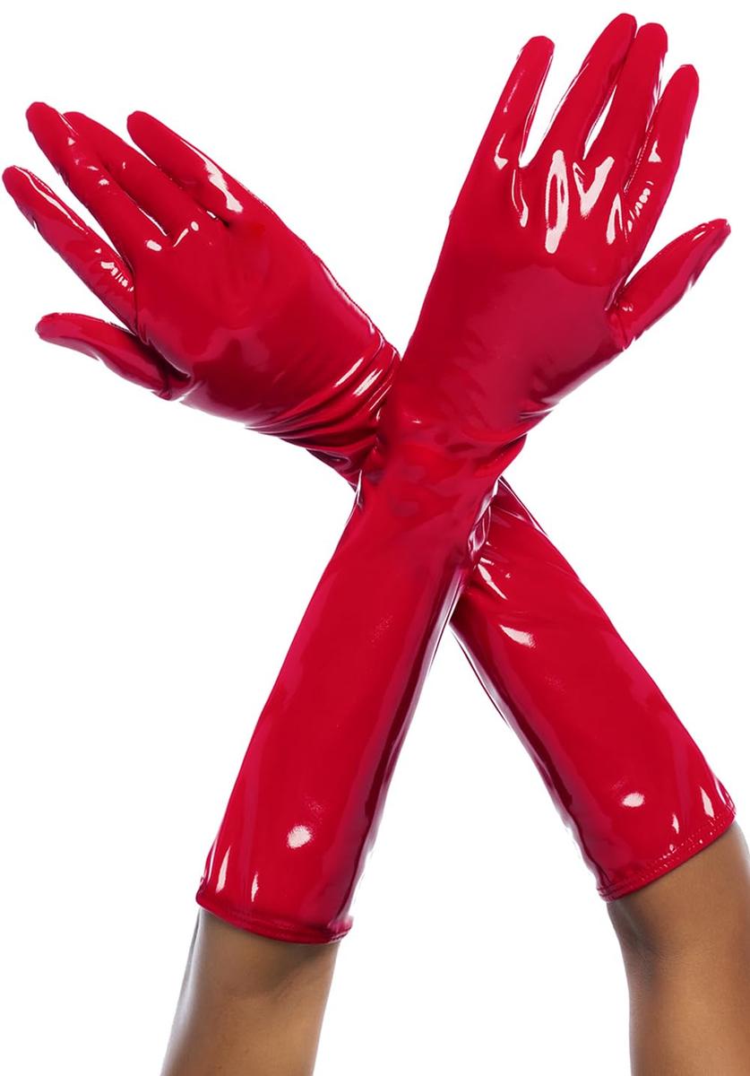 Cruella High Gloss Gloves L/XL Gloss Red Vinyl Adjustable Drawstring