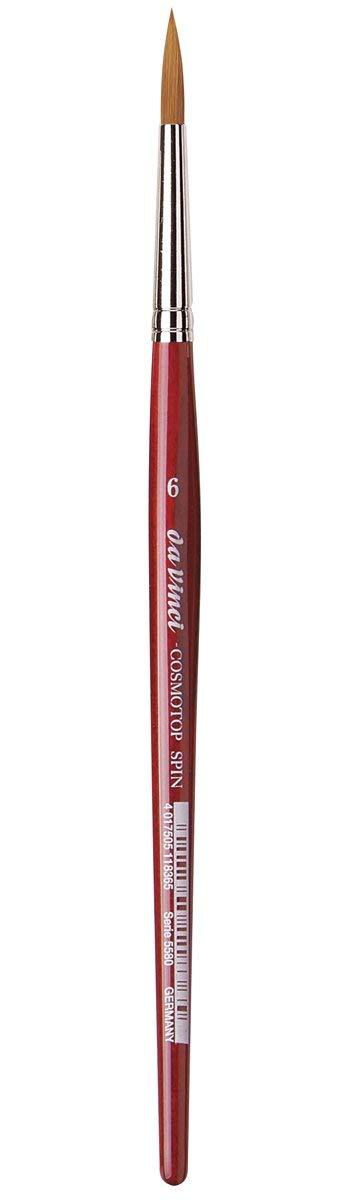 Η στρογγυλή βούρτσα από τη σειρά da Vinci COSMOTOP-SPIN έχει εξαιρετικά λεία ανοιχτή καστανή συνθετική ίνα. Έχει κοντό κόκκινο διαφανή λακαρισμένο εξαγωνικό χερούλι και ασημένιο περάσματα. Είναι κατάλληλη για ζωγραφική υδατογραφίας.