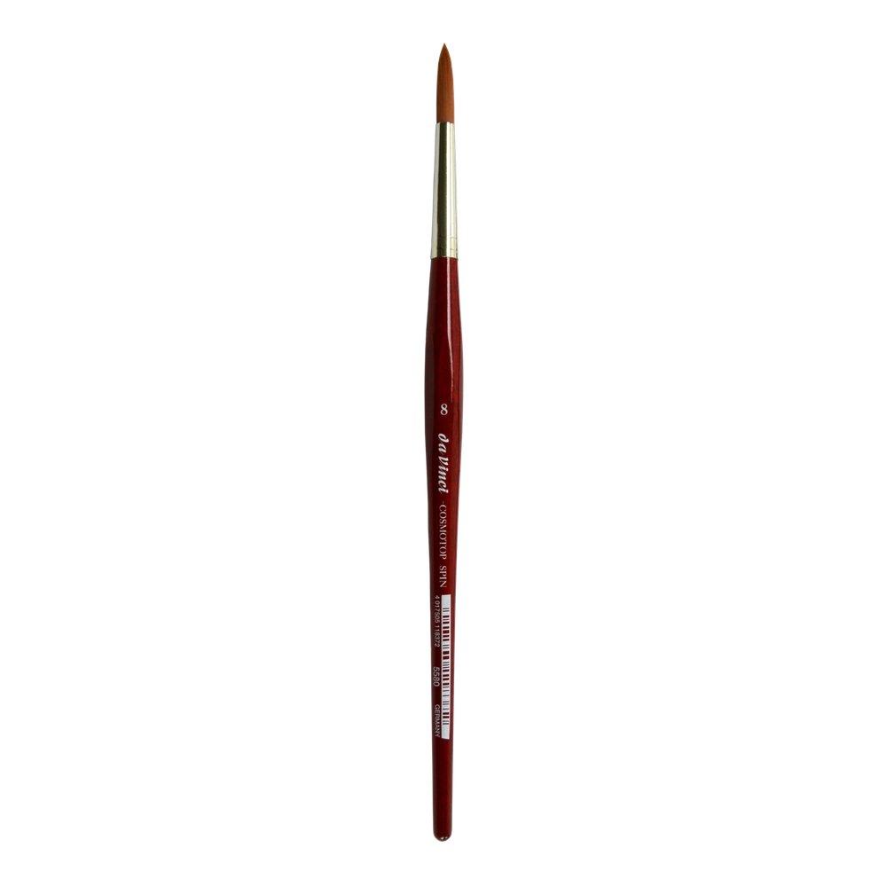 Το στρογγυλό πινέλο από τη σειρά da Vinci COSMOTOP-SPIN έχει εξαιρετικά ομαλή ανοιχτή καφέ συνθετική ίνα. Έχει σύντομη κόκκινη διαφανή λακαρισμένη εξαγωνική λαβή και ασημένιο περάσιμο. Είναι κατάλληλο για ζωγραφική με χρώματα νερού.