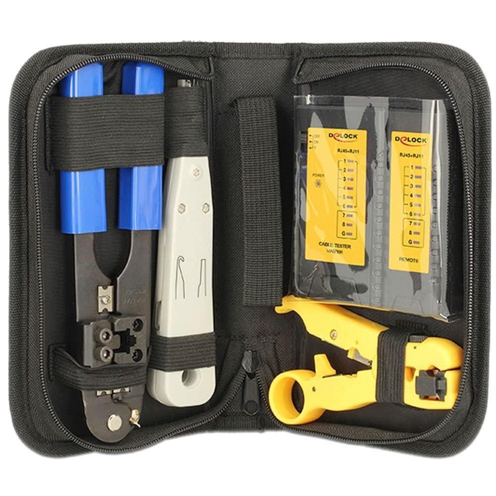Delock Network Toolkit Black Includes Cable Stripper, Crimping Tool, Punch Down Tool, Tester