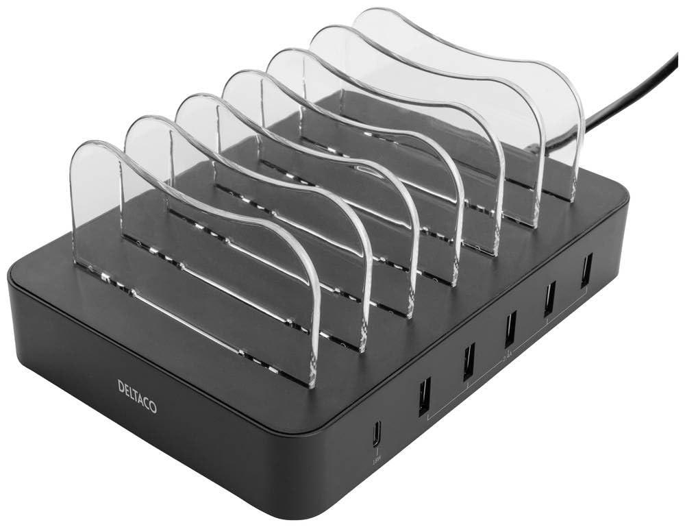 Deltaco Charging Station 50W 1x USB-C 5x USB-A Black