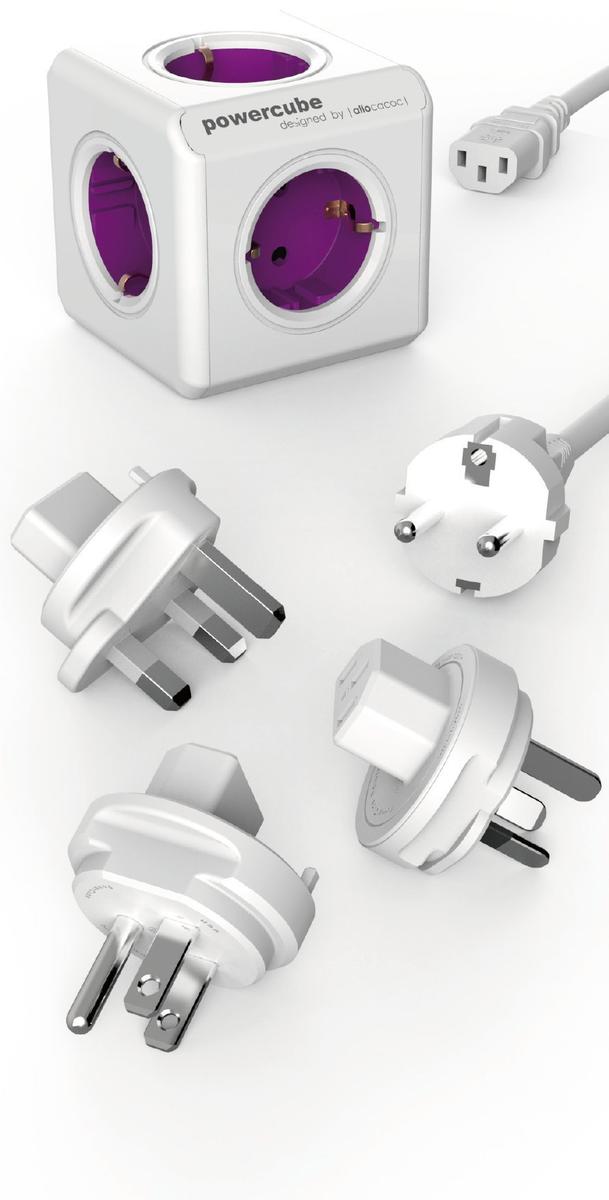 DesignNest Powercube Rewirable 5 Outlets CEE7 to C14 White and Mystic Magenta