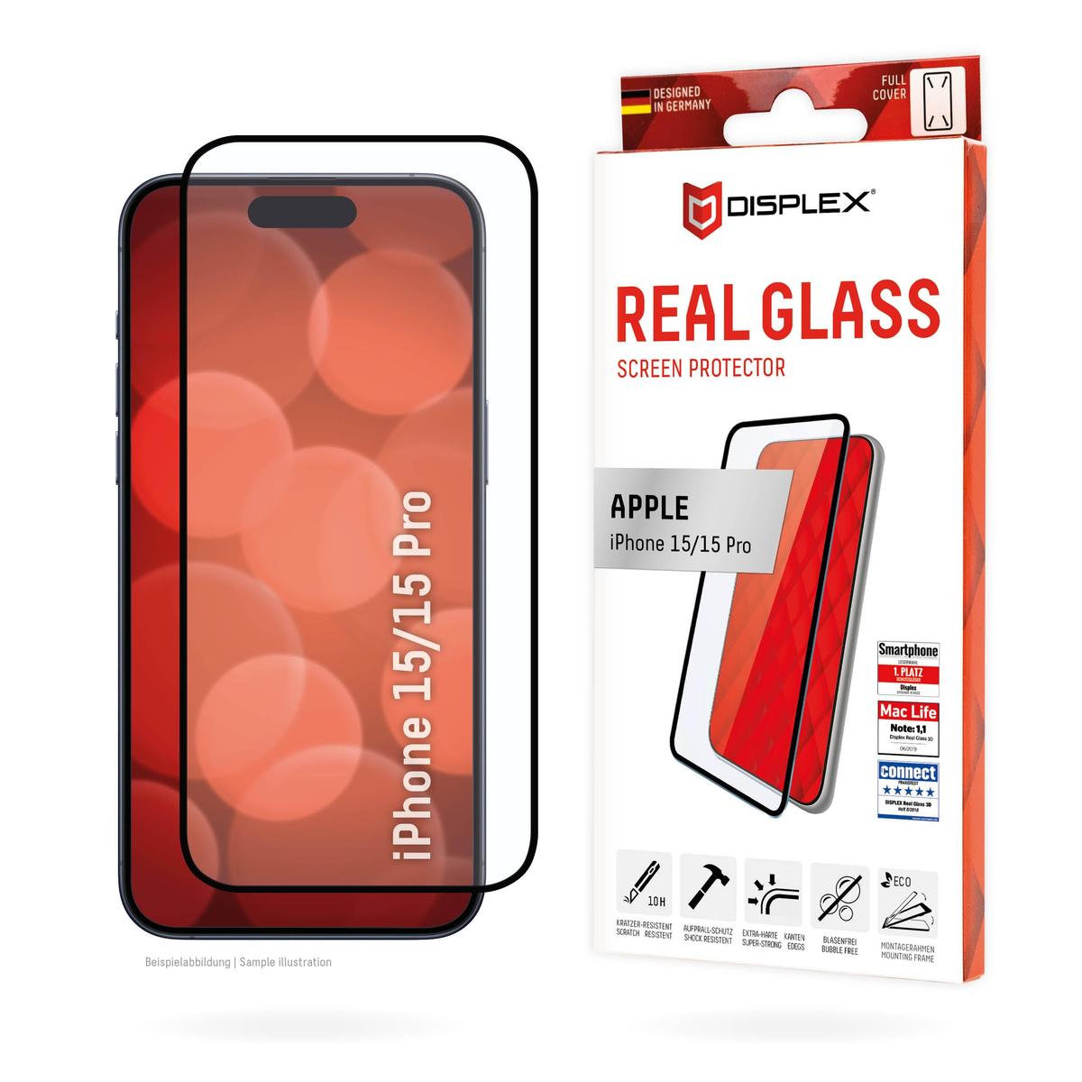 Displayschutzglas fr iPhone 15/ 15 Pro Kratzer-resistent dank extrem hartem tempered Glass (10H) High-Tech Anti-Fingerprint Beschichtung fr weniger Fettablagerungen Extra-harte, spezial verstrkte Kanten Optimale Transparenz und Farbbrillanz (Ultra HD)