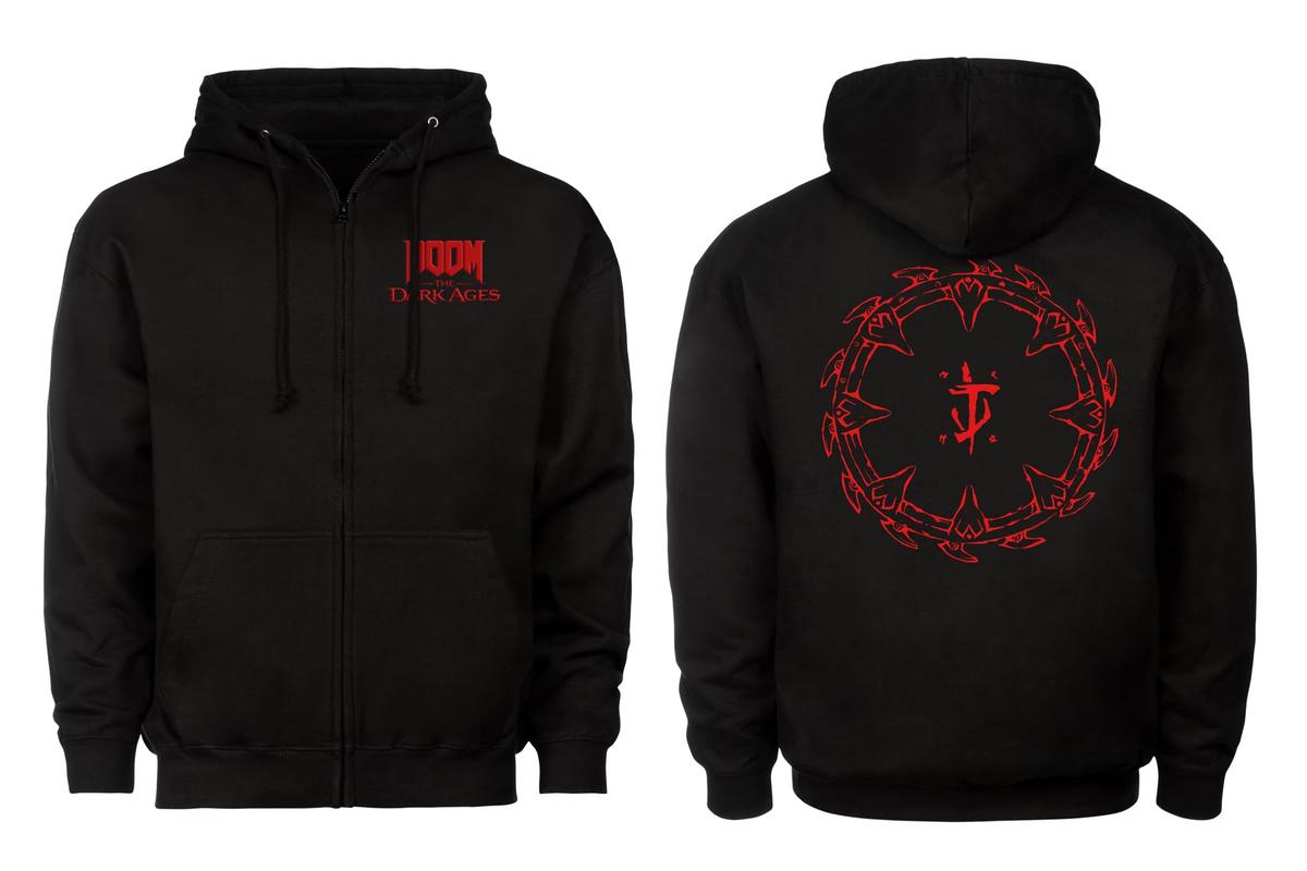 Doom The Dark Ages Zipper Hoodie Shield Size S Black