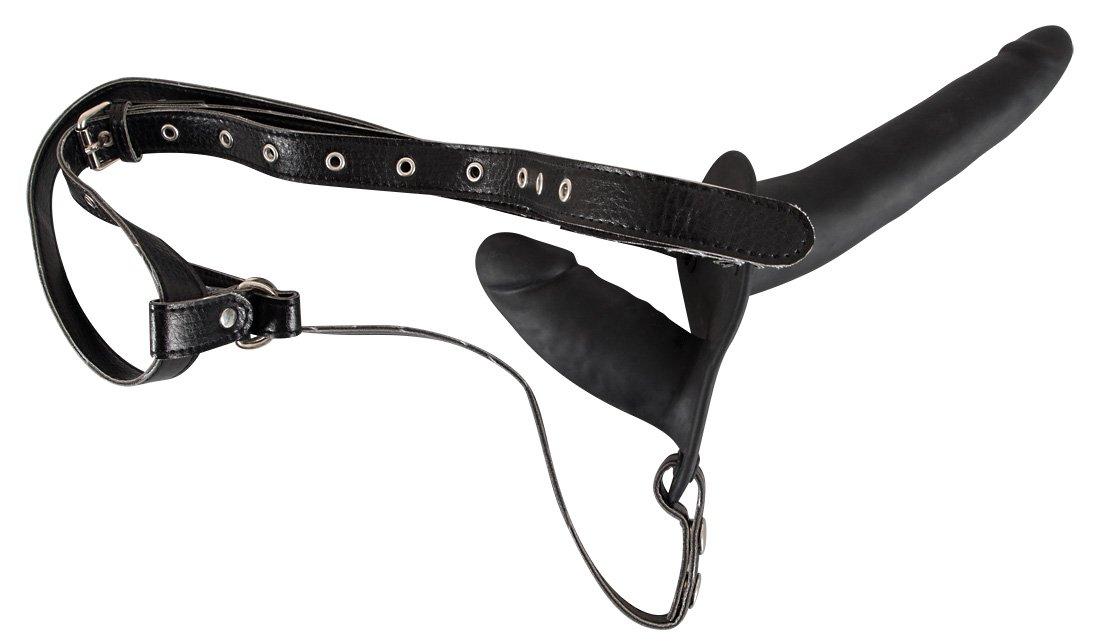 Double Strap On Black Silicone Two Dildos 15 cm and 8.5 cm