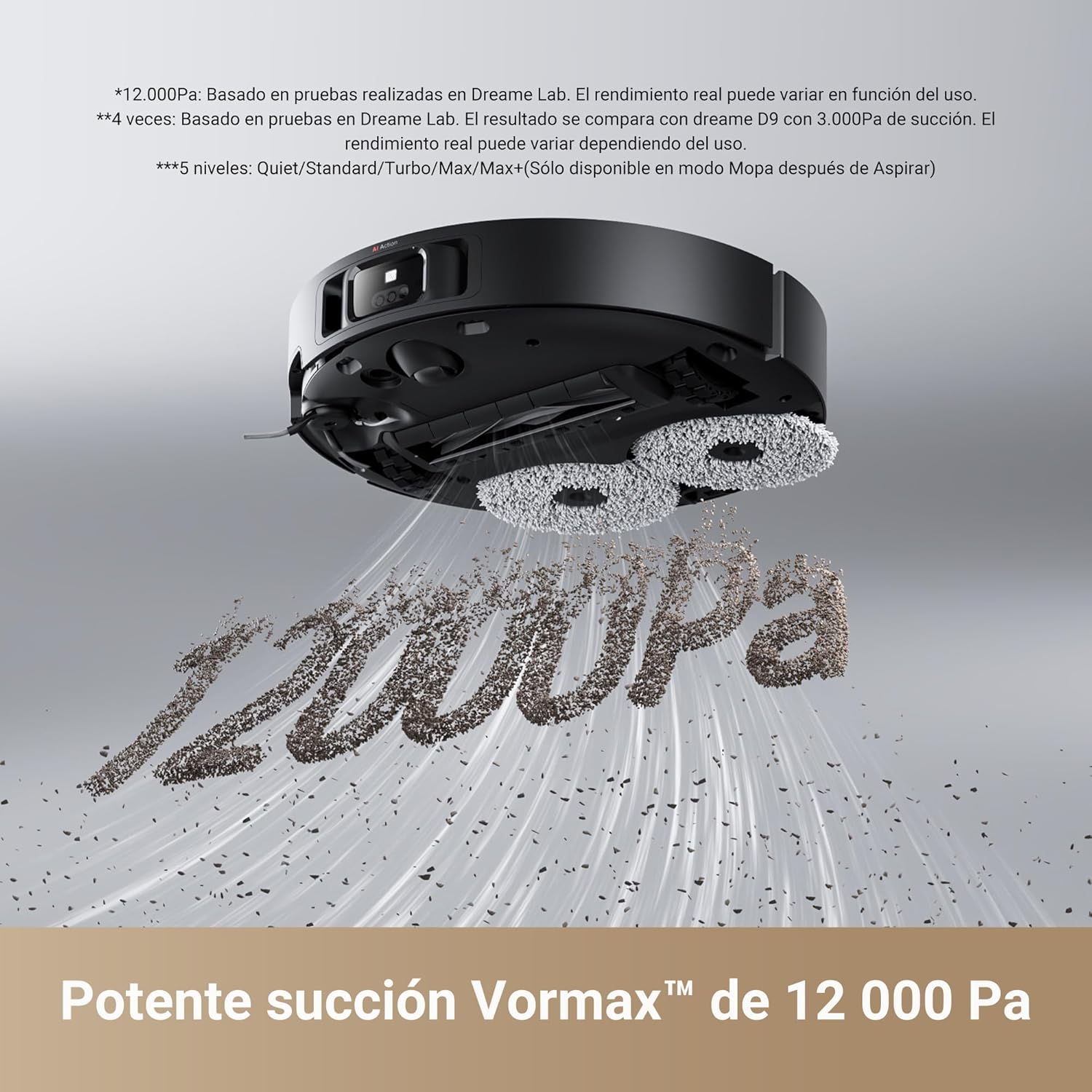 *The mopping speed slows down to 0.1m(3.94in)/s, the data comes from Dreame Lab.