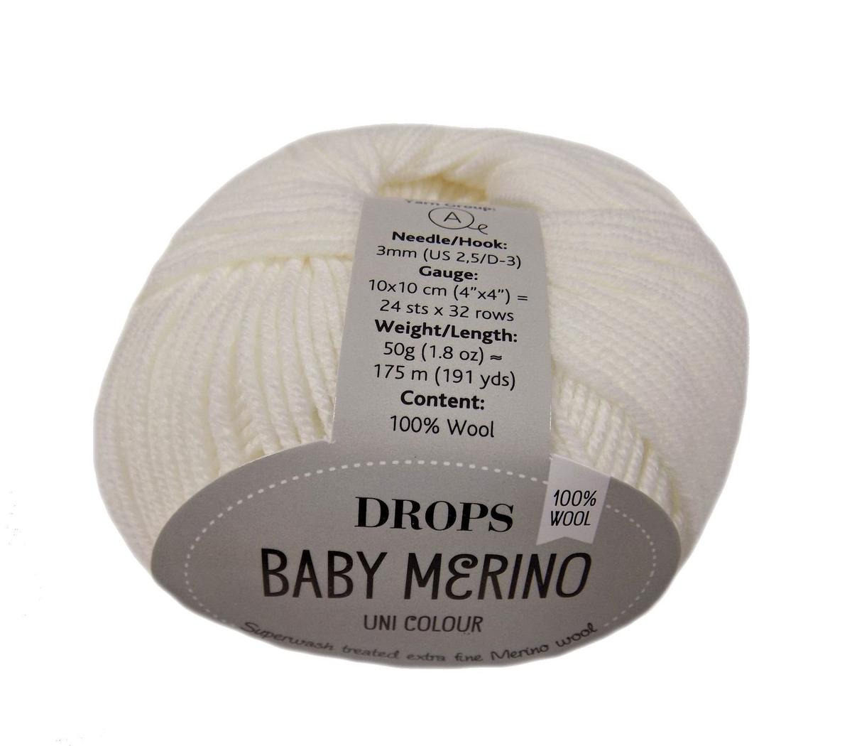Drops Baby Merino Knitting Yarn Uni Colour 01 White