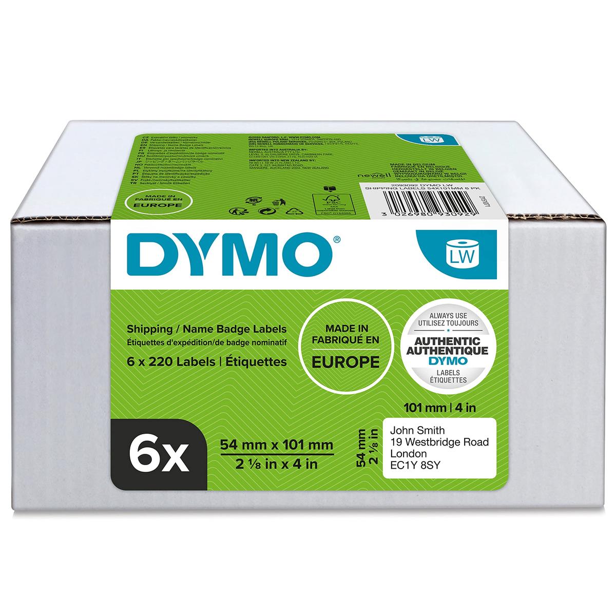 DYMO LW Original Large Shipping Labels 54 x 101 mm 6 Rolls of 220 Labels White