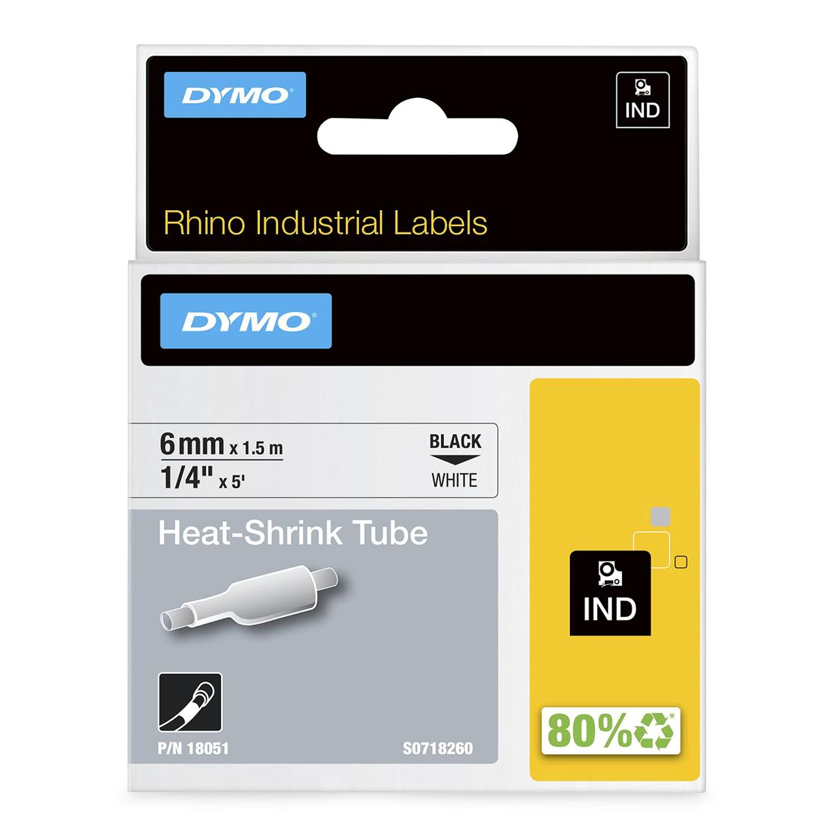 Dymo Rhino 18051 Heat Shrink Tube 6 mm x 1.5 m White with Black Text