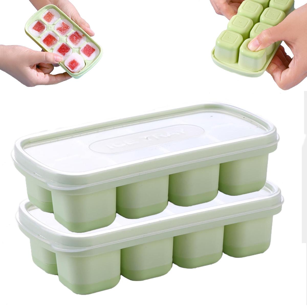 E-ALLDIR Ice Cube Tray with Lid Silicone Ice Cube Molds 2 Pieces Light Green