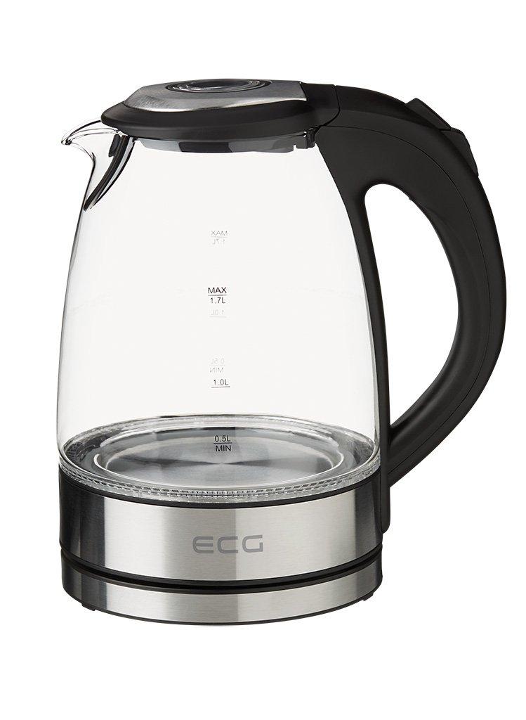 ECG RK 1776 Glass Kettle 1.7 Litres Glass Body Stainless Steel Accents Blue Backlight