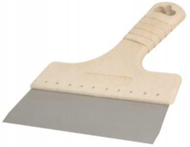Tool for construction and finishing works. Stainless, acid-resistant steel. Lenght 450 mm. Thickness 0.5 mm. Ergonomic handle, profiled from wood composite,perceptible structure. The handle does not swell under the influence of water.