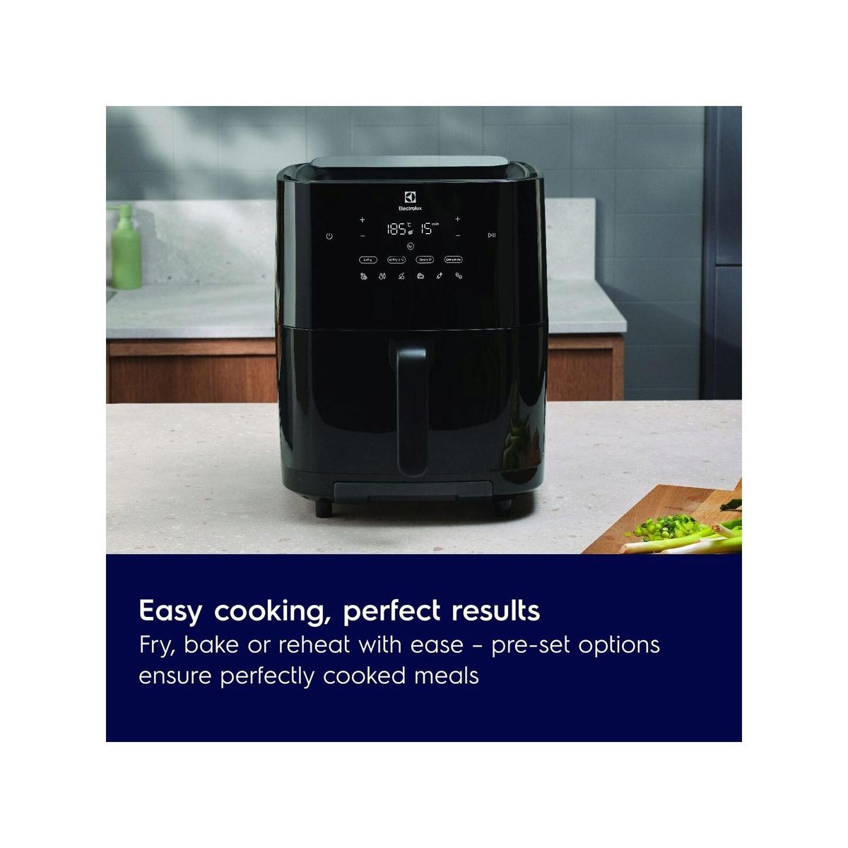 Τηγανίστε, μαγειρέψτε με ατμό ή κάνετε και τα δύο με την αεροθερμική φριτέζα Electrolux 800. Απολαύστε υγιεινά και νόστιμα φαγητά, με τραγανή εξωτερικά επιφάνεια και χυμώδες εσωτερικό! ΛΙΓΟΤΕΡΟ ΛΙΠΑΣ ΚΑΙ ΘΕΡΜΙΔΕΣ Η αεροθερμική φριτέζα Electrolux 800 σας βοηθά να βρείτε ένα υγιεινότερο τρόπο για να απολαύσετε τα αγαπημένα σας τηγανιτά. Ο κυκλοφορών θερμός αέρας τηγανίζει το φαγητό από όλες τις πλευρές και του δίνει