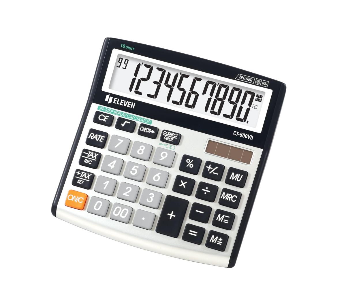 Eleven CT500VIIE Desktop Calculator 10 Digit Display Solar Battery Operated Black Gray