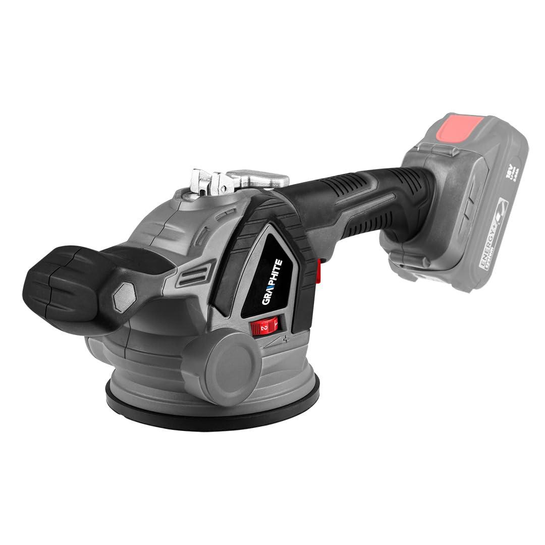 Przyssawka do pytek 18V Energy+, czstotliwo wibracji: 0-7500/min-1, rozmiar stopy 130mm, regulacja wibracji: 7 poziomw (MIN, 1, 2, 3, 4, 5, MAX), maksymalny udwig: 50kg, waga 1,1kg, czas pracy akumulator: 2Ah 55 min, 4Ah 110min, 6Ah 165min, 8Ah 230min, urzdzenie jest przystosowane do pracy z akumulatorami ENERGY+ 58G001-1, 58G004-1, 58G086-1 i 58GE152.