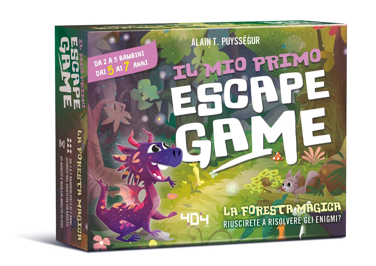 Una nuova linea di Escape Room per bambini che vi permetterà di allestire casa vostra per creare una vera e propria caccia al tesoro home-made! NEllo specifico questa scatola è adatta ai più piccini, dai 5 anni in su!Spargete le carte indicate in giro per la casa, nascoste ma non troppo, fate partire il tempo e date il via ai vostri piccoli esploratori!Athi, il piccolo drago, era nella foresta per sostenere la sua &ldquoprova dei Boschi&rdquo così da poter diventare un adulto, quando, all&rsquoimprovviso, si è perso. La sera sta per calare e ha bisogno del vostro aiuto per uscire da questo posto, alla svelta! Ha sentito dire che delle strane creature strisciano fuori dai cespugli quando sorge la luna&hellip Avete poco tempo per aiutare Athi a superare la sua prova dei Boschi e tornare dalla sua famiglia!Un adulto, il Narratore dell'avventura, conduce il gioco, nasconde gli indizi, dà aiuti e conferma le risposte. Se i giocatori riescono a risolvere gli enigmi entro il limite di tempo di 45 minuti, hanno completato con successo lo scenario e vincono la partita!Prova anche: Escape Box - Pirati - Escape Box - Dinosauri e Escape Box - Il Mio Primo Gioco di Ruolo !Contenuto: Un libretto di 32 pagine che contiene le regole, lo scenario e le soluzioni, 40 carte da nascondere nell&rsquoarea di gioco, un poster.