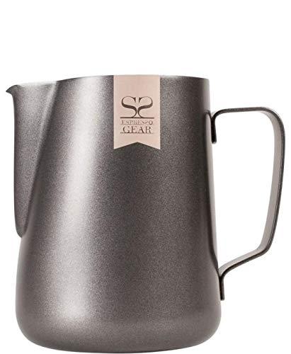 Το ανθεκτικό στρώμα τεφλόν διευκολύνει τη συντήρηση. Εργονομικά σχεδιασμένο στόμιο και χερούλι. Το εξωτερικό τοίχωμα είναι σημειωμένο με το λογότυπο Espresso Gear. Χωρητικότητα: 350ml
