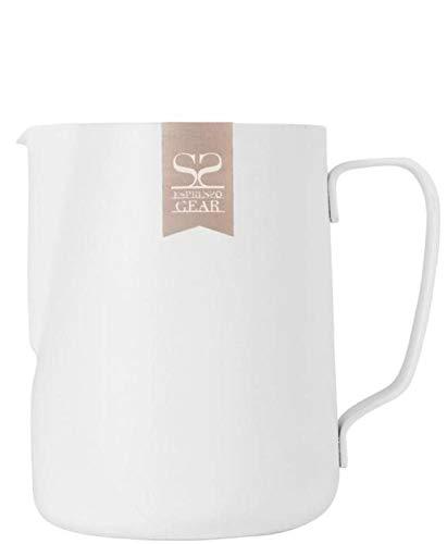 Το ανθεκτικό στρώμα τεφλόν διευκολύνει τη συντήρηση. Εργονομικά σχεδιασμένο στόμιο και χερούλι. Το εξωτερικό τοίχωμα είναι σημειωμένο με το λογότυπο Espresso Gear. Χωρητικότητα: 350ml