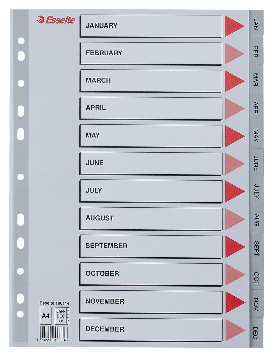 Esselte Divider Sheets January to December A4 PP
