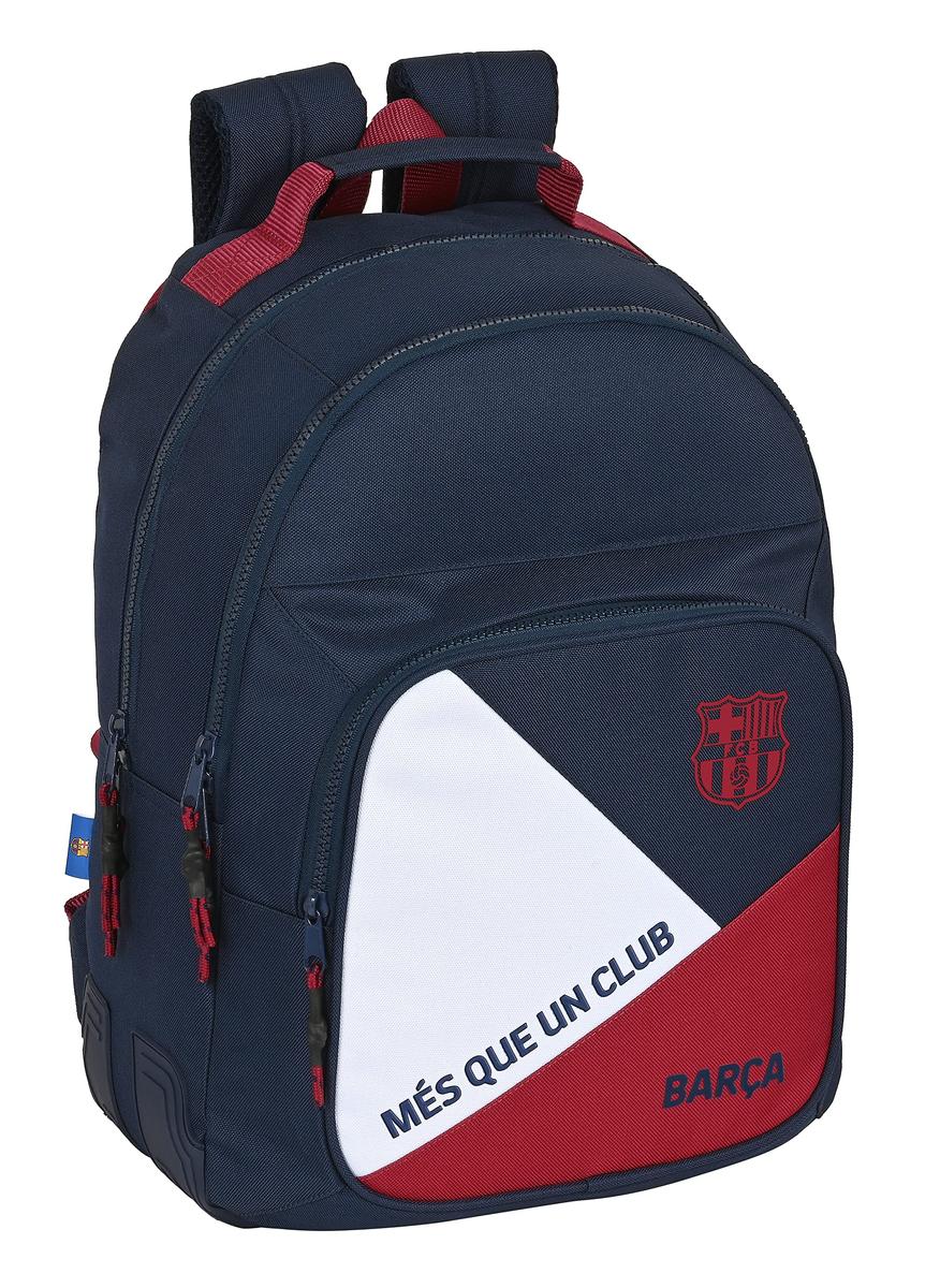 Children deserve the best, that's why we present to you School Bag F.C. Barcelona Blue Maroon (32 x 42 x 15 cm), ideal for those who seek quality products for their little ones! Get F.C. Barcelona and other brands and licences at the best prices!Gender: UnisexDesign: CasualSportingType: School BagColour: BlueMaroonCharacteristics: Ergonomic paddingUpper handleAdapts to rucksack trolleyCorner ReinforcementsMaterial: Polyester 600DType of fastening: ZipIncludes: Water bottle side pocketInterior OrganiserCompartments: 2 CompartmentsApprox. dimensions: 32 x 42 x 15 cm