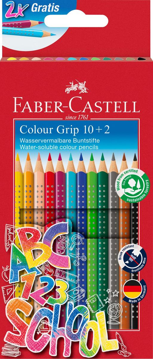 Faber-Castell Colour Grip Colored Pencils 10 + 2 Bonus Promotional Case