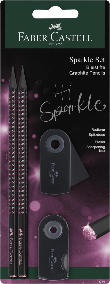 Faber-Castell Sparkle Midnight Rose Writing Set 2 Pencils, 1 Eraser, 1 Sharpener