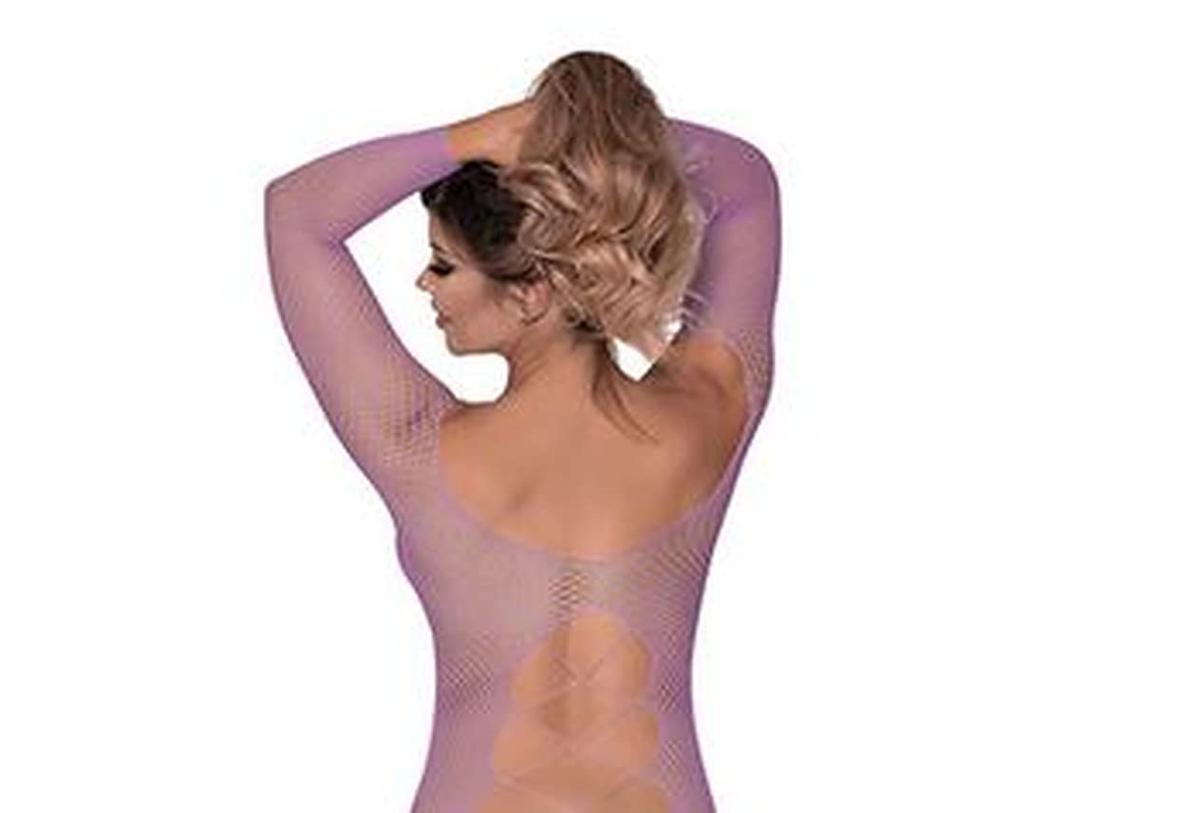 Fishnet Gartered Catsuit One Size Lavender