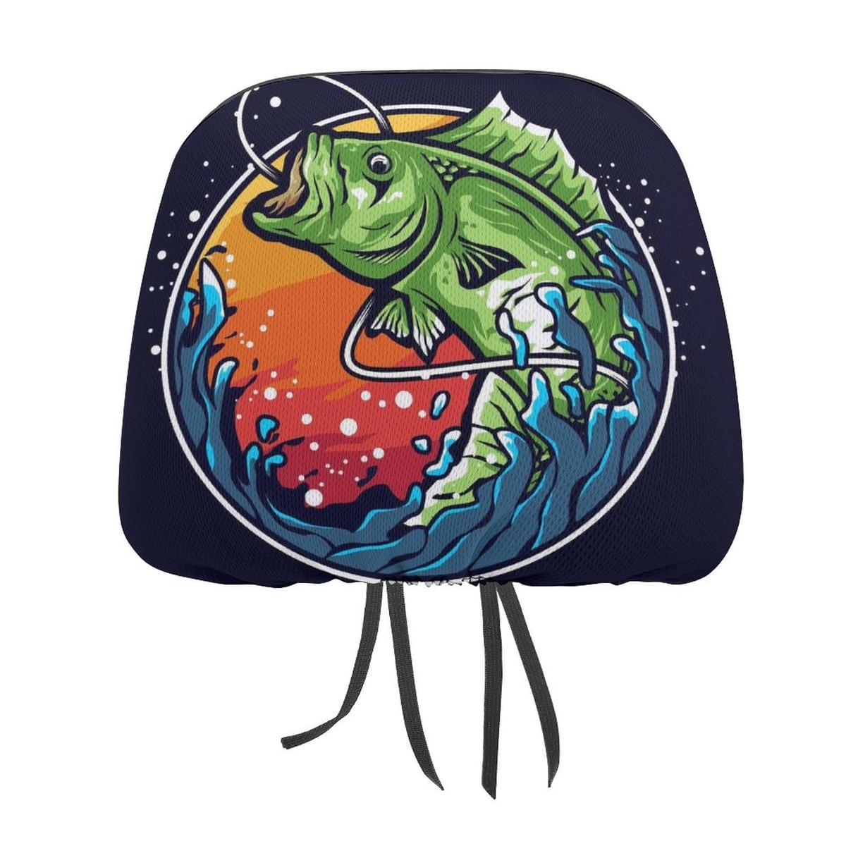 FJQWKLF Car Headrest Cover Bass Fishing Print Universal Fit 2 Pack